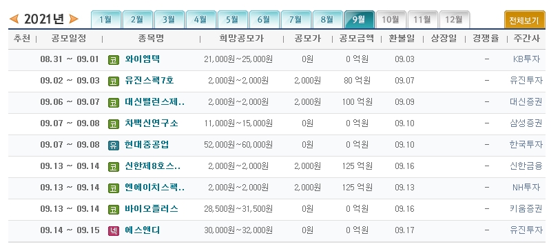 오늘은 2021년 9월에 청약 예정인 공모주 정보와 함께 공모주 청약 전 꼭 알아야 할 3가지 내용에 대해 정리 하고자 하니 공모주 청약에 관심 있는 분들이라면 꼭 끝까지 읽어보시기 바랍니다.