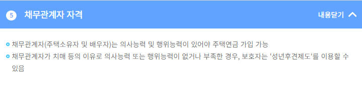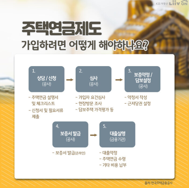 또한 연금에 가입할 주택에 가입자나 배우자가 실제 거주하고 있어야 한다는 사실도 잊지 말아야 하겠습니다. 거주 중이며 보증금 없이 주택 일부만을 월세로 주고 있는 경우에도 가능합니다.