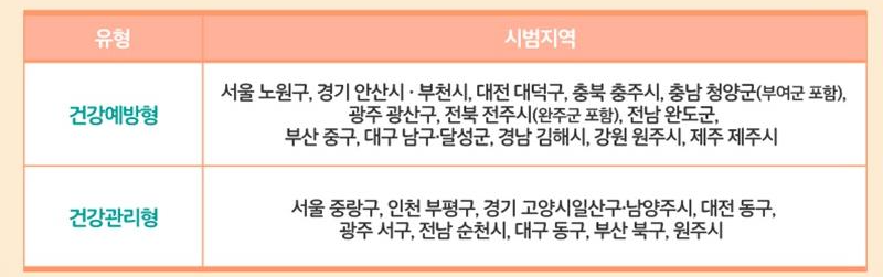 - 건강관리형 : 일차의료만성질환관리 시범사업에 등록한 고혈압, 당뇨병 환자