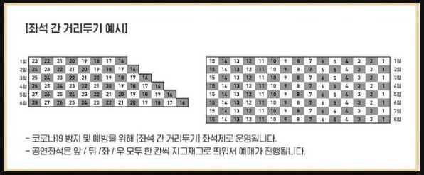 공연은 코로나19라는 사회적 위기 상황속에서 개최되는 만큼 생활 속 거리두기 지침에 따라 좌석 간 거리두기 방식으로 진행 된다고 합니다. 서울 공연의 경우 올림픽공원 체조경기장 수용인원이 1만 5,000명 이지만 이 중 1/3인 5200석만 사용 할 예정입니다.