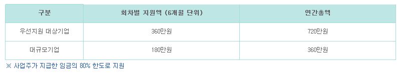 * 지원대상 : 모든 사업주 (단, 임금체불로 명단이 공개중인 사업주, 장애인 고용의무 미이행 사업주는 지원 제외)