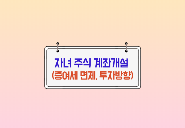 안녕하세요, 최신 트렌드에 맞춰 돈이 되는 정보만을 골라 전달 드리는 샤오롱입니다. 오늘은 자녀를 위한 주식계좌 개설에 대해 소개 해 드리고자 합니다. 증여세가 면제될 수 있는 방법과 어떤 주식을 주로 구매하면 좋을지 투자 방향에 대해서도 같이 알아 보겠습니다. 저는 주식은 사고 파는 것이 아니라 장기 성장성을 믿고 꾸준히 사 모으는 것이라고 생각합니다. 제가 추가하는 방법은 단기차익을 노리는 것이 아닌 장기 안정형 투자임을 참고 해 주십시오.
